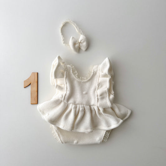 Newborn Floral Romper with Ruffles + Headband – Photography Prop Set