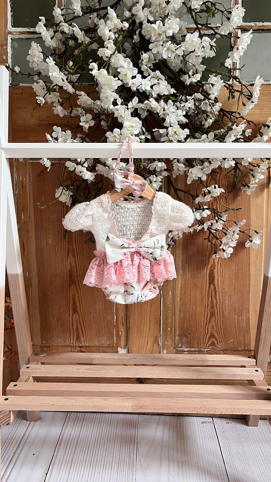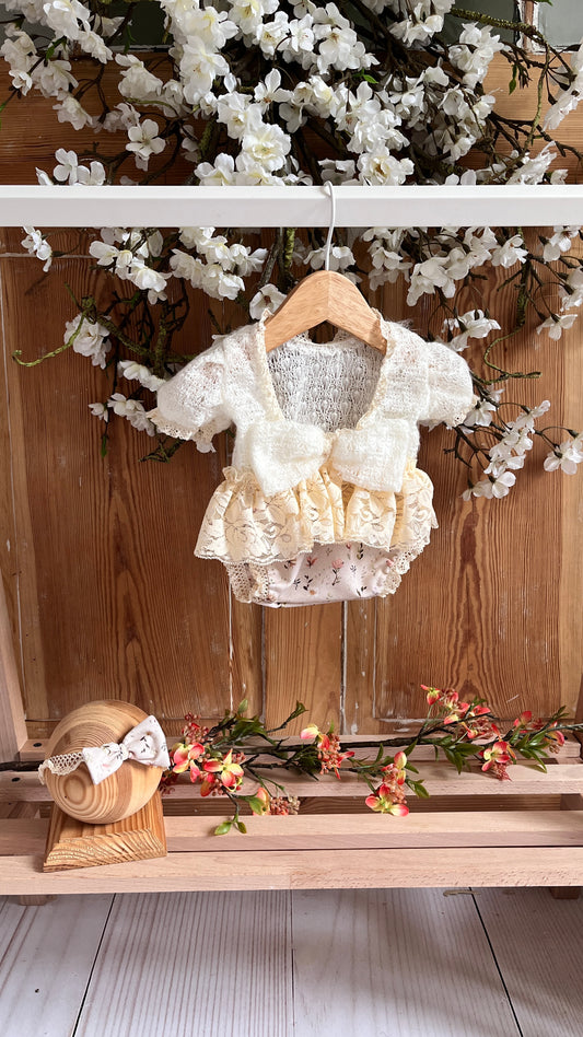 Anabelle cremefarbene Spitze und Elfenbein, Foto-Requisiten-Outfit für Mädchen