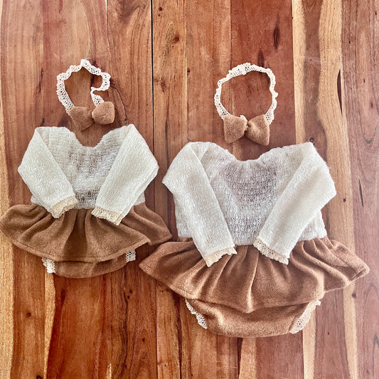 Anabelle Cappucino Spitze & Blume Neugeborenen oder Babysitter Fotografie Prop Outfit für Mädchen