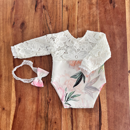 Maria beige & flover Neugeborenen Fotografie Requisiten