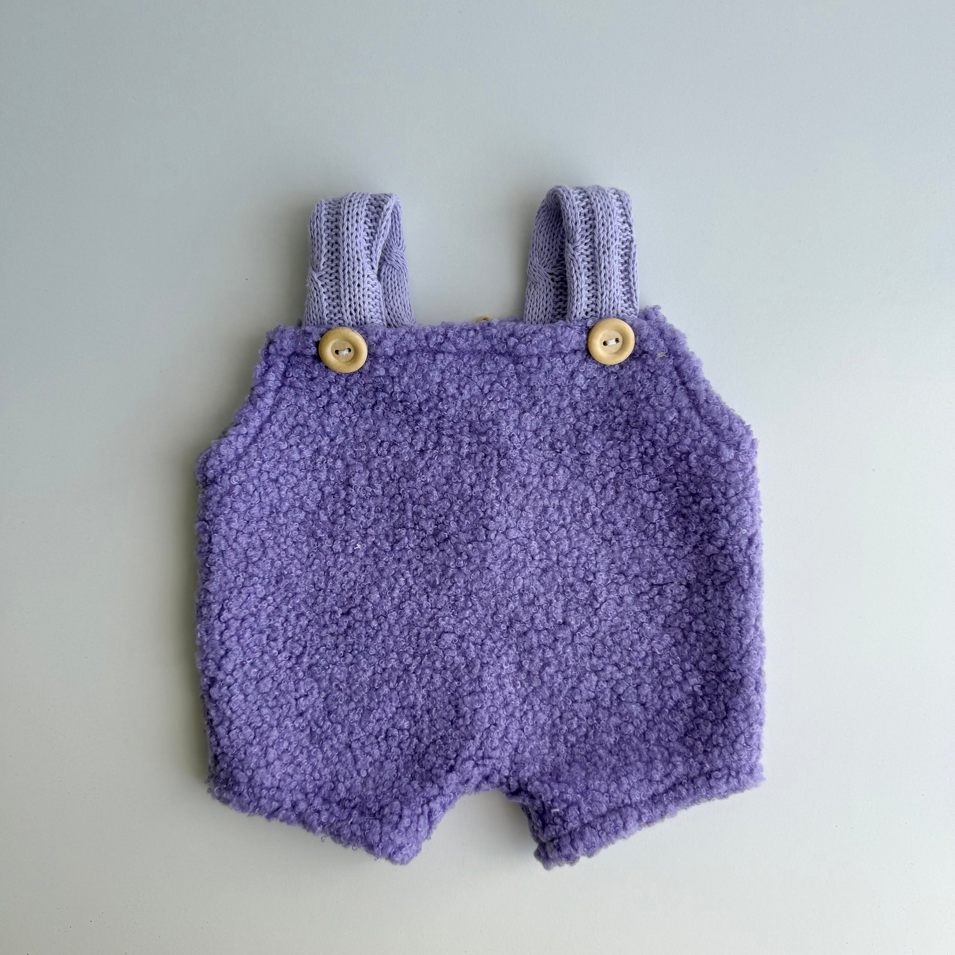 Crafted in a delicate purple shade, this piece brings warmth, depth, and elegance to your studio styling. The boucle-style fabric creates beautiful texture in photos, while the knitted shoulder straps with wooden buttons add a natural, rustic charm.