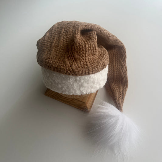Chapeau de Père Noël crème, fond avec poche. Accessoires photo pour nouveau-né.