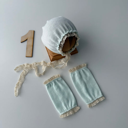 Ensemble bonnet tressé menthe Dalia avec jambières, accessoire de photographie pour nouveau-né