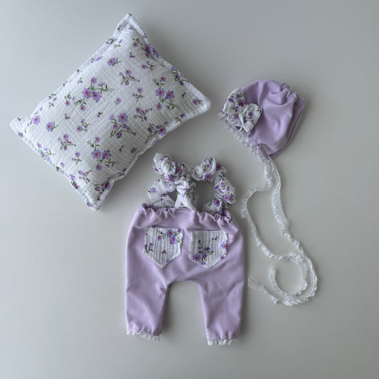Violet Pants with bonnet and pillow for girl Baby Newborn Photography Props